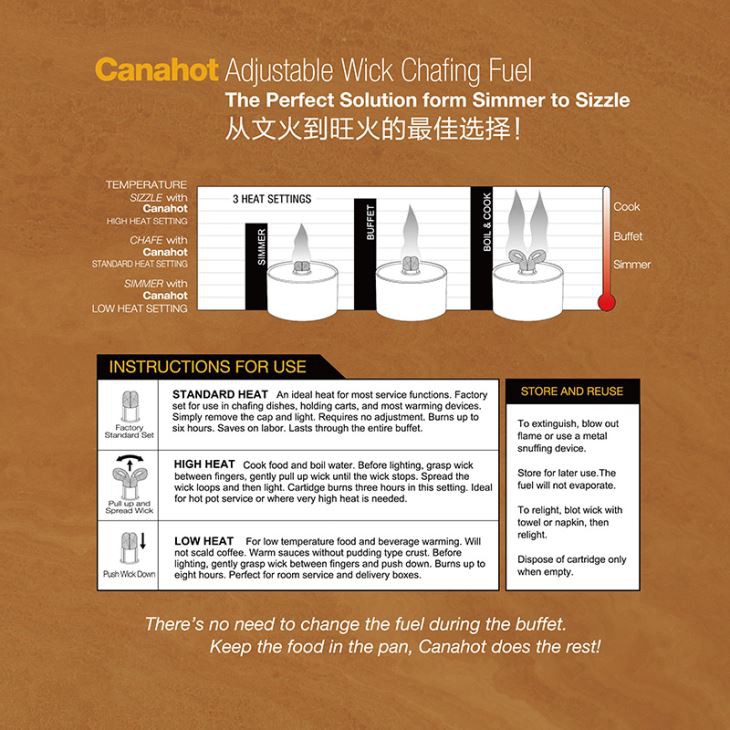 With Canahot fireplace fuel, you get just the right heat from simmer to sizzle.Wick chafing fuels is widely used at buffets in hotels and restaurants.Welcome to buy the best fireplace fuel at low price from our factory.